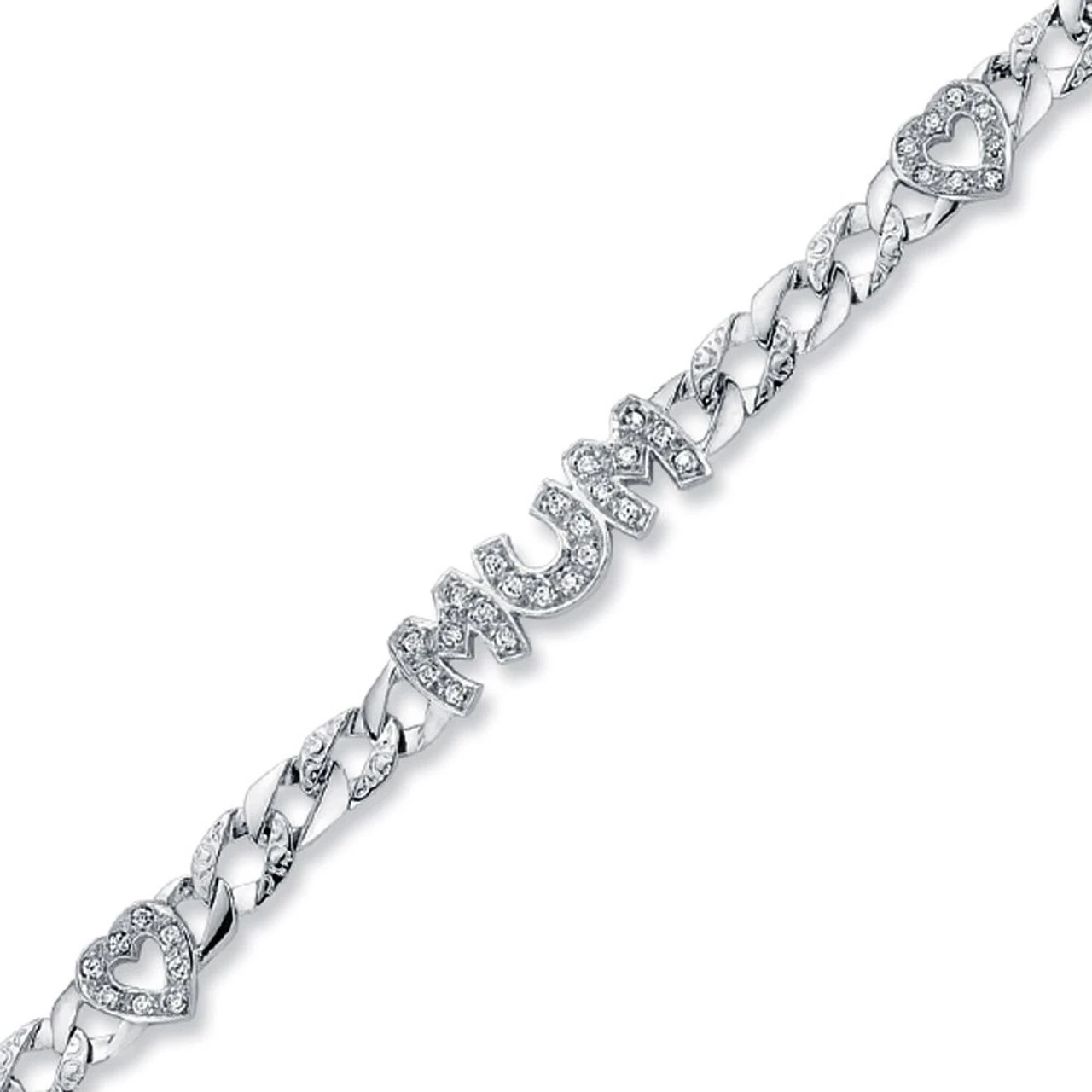 - Stunning 925 Silver Cubic Zirconia Set Heart Mum Bracelet.