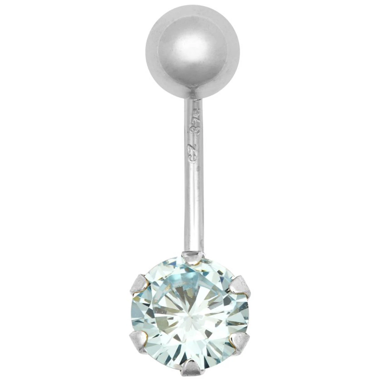 9ct White Gold Light Blue Cubic Zirconia Belly Bar P702133