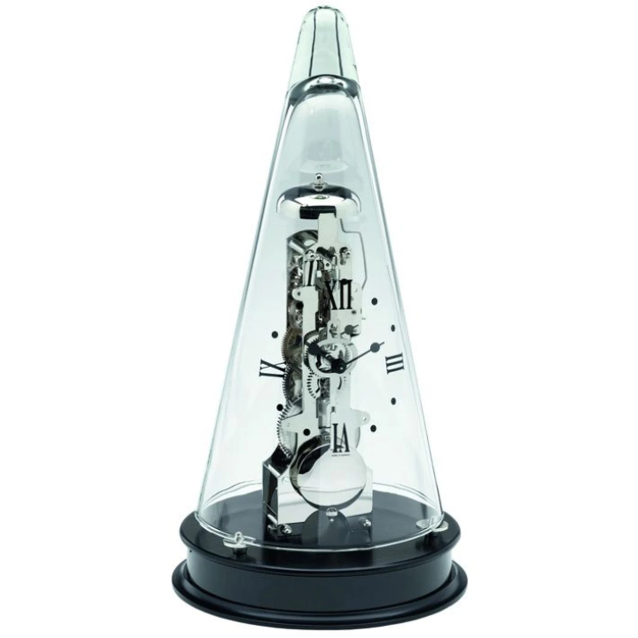 - Mechanical skeleton movement and 14-day power reserve with front pendulum.