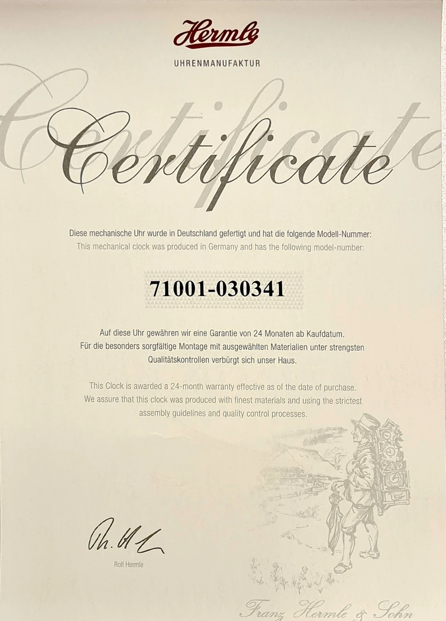 - 4/4 Westminster Chime. Chimes every quarter hour and strikes on the hour.
