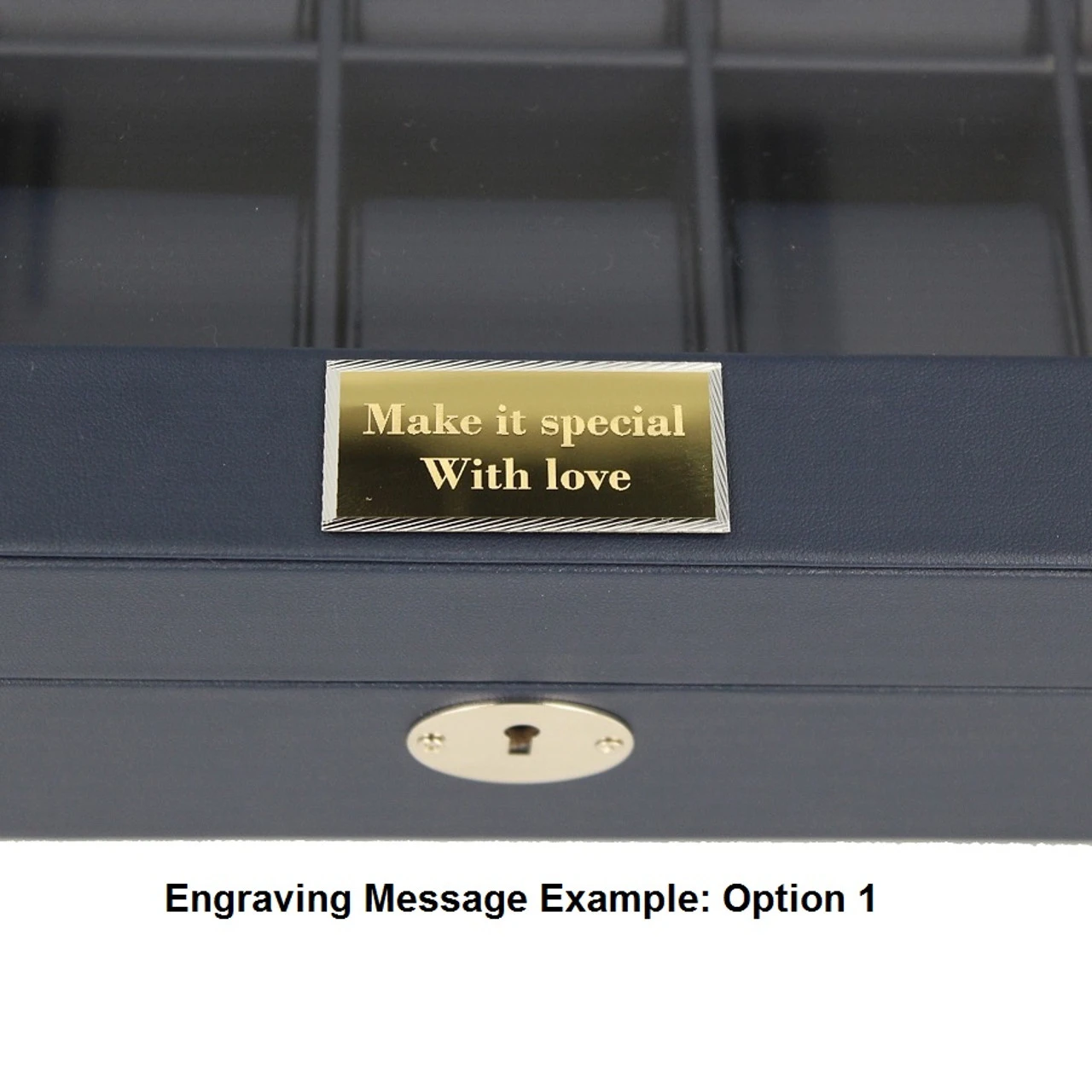 - The maximum characters for engraving on this box will be 2 lines, 15 characters per line, on a gold or silver plaque. The self-adhesive plaque is sent along with the order. You can attach this anywhere on the box as per your preference.
