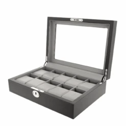 Orbit Black And Grey Leather Personalised Luxury Watch Box OW204