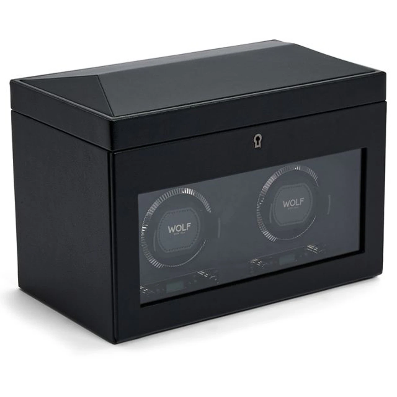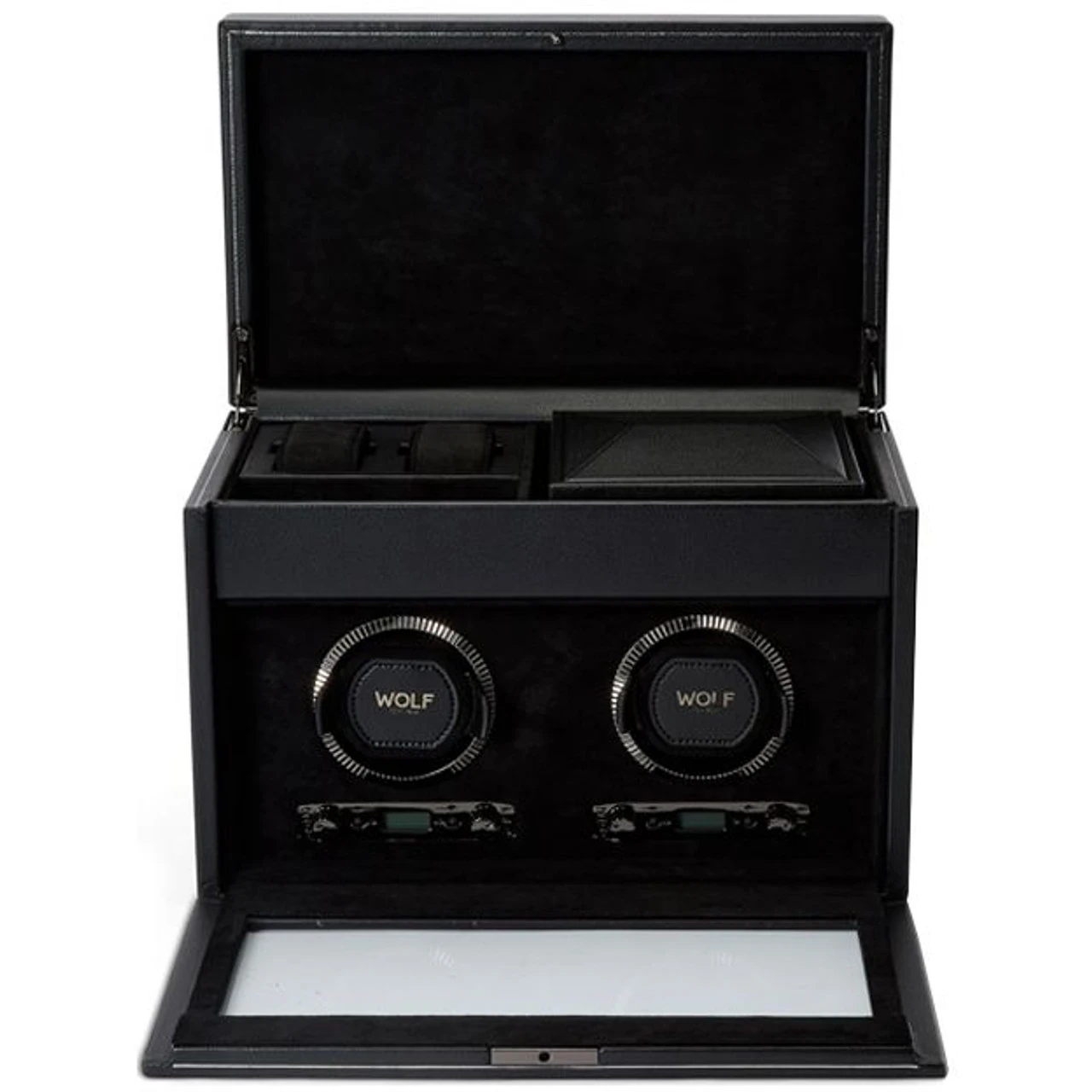 | Storage | 2 winding modules, 2pc watch storage with suspended cushions, 1 open compartment, travel case (1pc watch storage, 1 lidded compartment) |
